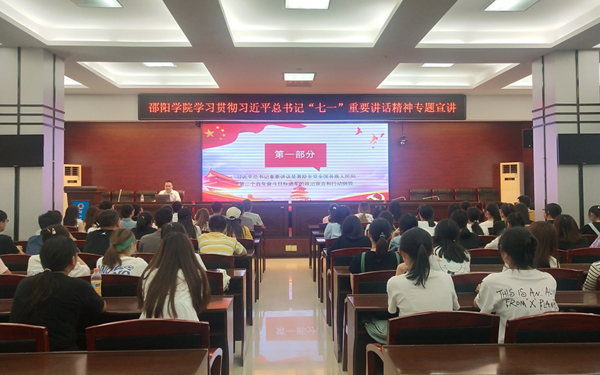 9月14日下午,我校首场学生学习贯彻习近平总书记“七一”重要讲话精神专题宣讲报告会在七里坪校区一办公楼一楼报告厅举行。校党史学习教育思政课教师宣讲团成员、邵阳市青年讲师团成员、马克思主义学院教师姜敏作宣讲报告,马克思主义学院100余名学生参加。