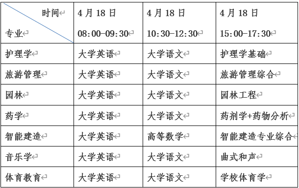 注:音乐学专业的《曲式和声》考试时间4月18日15:00-16:30,