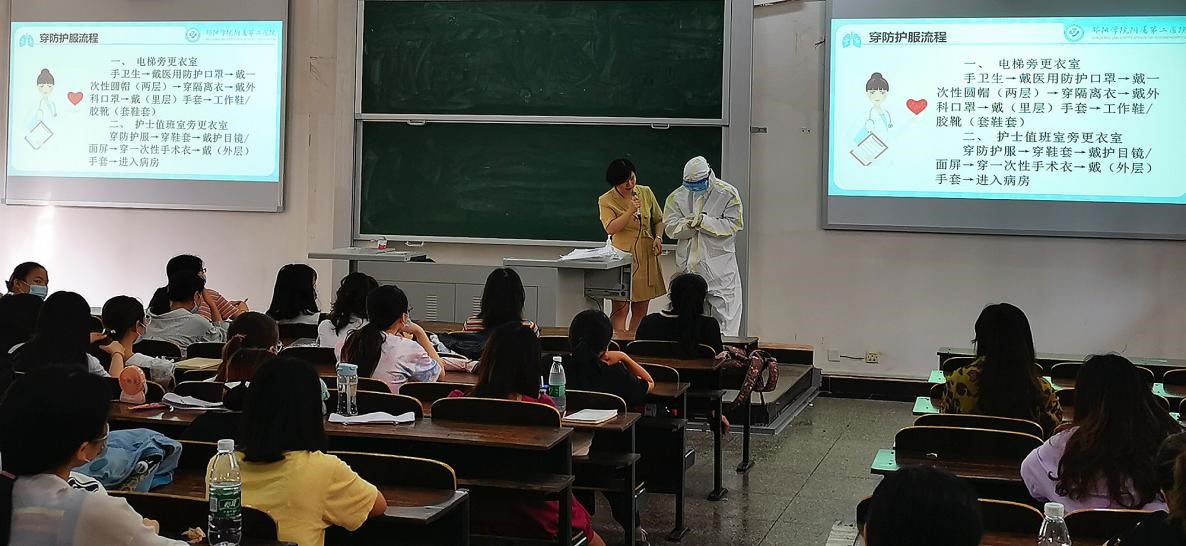 2020年6月6日,护理学院护理学本科大三、护理专科大二学生迎来了返校的第一堂课,我院邀请了邵阳学院附属第二医院何烈人、禹细阳老师分别在七里坪、西湖校区教学楼为即将实习的学生讲述奔赴湖北抗击新冠肺炎的经历。