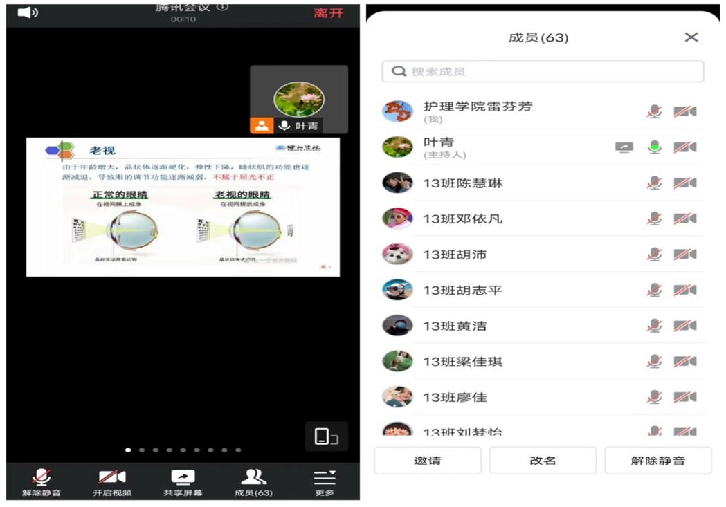 疫情期间,护理学院线上教学质量监控与督导小组共参与督导听评课503次,督查总体情况良好,教师课前准备充分,师生均能按时到课,课堂组织科学有效,能实现良好互动,学生满意度高。