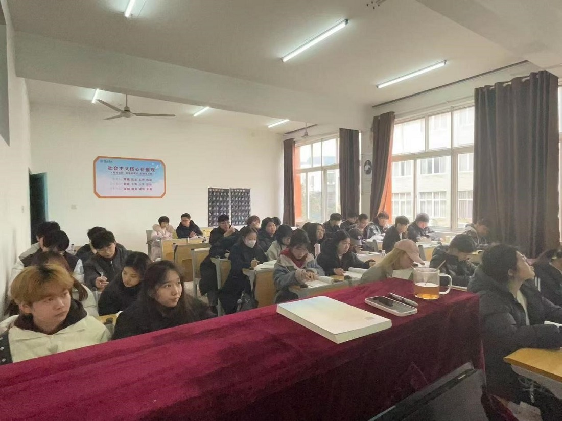 图1:督导组组长刘叶波(后排左)、组员贺思敏(后排右)在理论课堂现场作听课记录。