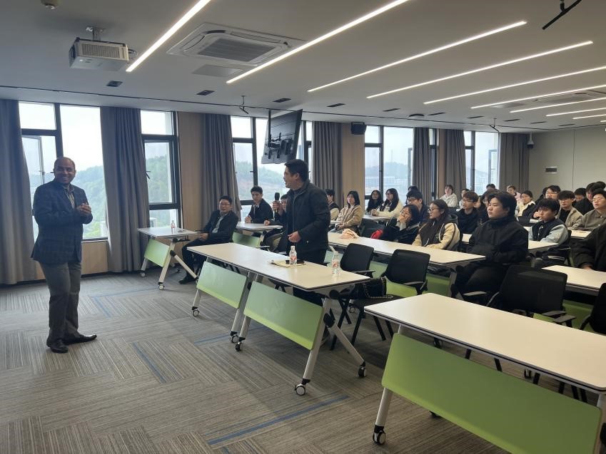 2026年4月2日下午2点,由教务处联合国际学院主办的“用光连接世界:光通信技术如何赋能未来网络”主题学术讲座在明德楼北905教室正式开讲。国际学院副书记唐永辉、副院长肖婷、电气工程学院聂俊飞博士等教师,以及国际学院通信工程专业部分学生到场聆听。