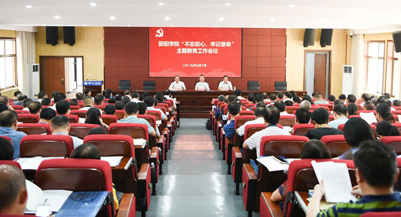 为进一步学习贯彻习近平总书记在“不忘初心、牢记使命”主题教育工作会议上的重要讲话精神,传达省委有关会议精神,邵阳学院于9月10日召开“不忘初心、牢记使命”主题教育工作会议,对学校深入开展“不忘初心、牢记使命”主题教育进行动员部署。省委巡回指导第五组组长、省人大常委会委员、省人大教科文卫委副主任委员、原省卫生和计划生育委员会党组书记、副主任詹鸣,省人社厅劳动关系处副处长蒋志勇,省工商联经济处主任科员林挥伟莅临指导。会议由校党委副书记、校长彭希林主持,全体校领导、校本部中层干部及附属医院领导班子成员参加会议。