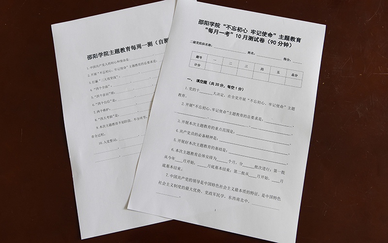 邵阳学院主题教育领导小组全面启动了“每周一测,每月一考”党建知识测试活动