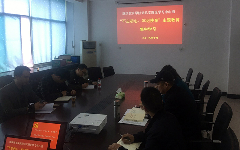 为深入开展“不忘初心、牢记使命”主题教育,把学习习近平新时代中国特色社会主义思想进一步引向深入,用习近平新时代中国特色社会主义思想武装头脑、指导实践、推动工作。10月17日下午,继续教育学院党总支理论学习中心组召开理论学习会议,学习习近平总书记关于“不忘初心、牢记使命”主题教育系列讲话及重要论述。会议由总支书记周英勃主持,学院班子成员和第一、第二党支部书记参加学习。