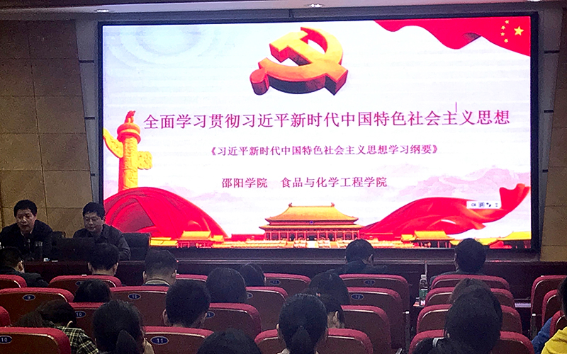 10月17日16时,食品与化学工程学院在李子园办公楼二楼报告厅举行“不忘初心、牢记使命”第二讲专题党课。党课以“全面学习贯彻习近平新时代中国特色社会主义思想”为题,院长余有贵同志主讲,副院长刘建强同志主持,学院全体教工党员、学生党员参加了本次的党课学习。