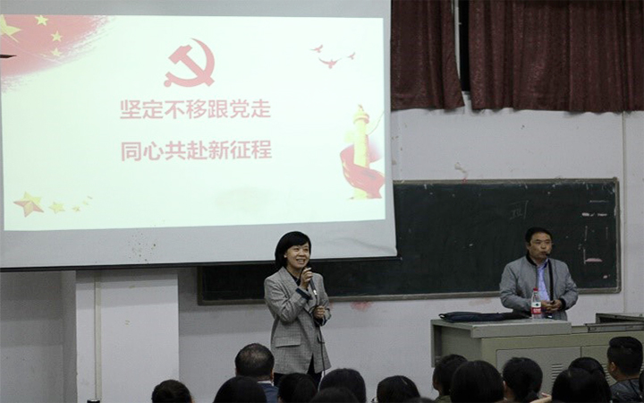 为庆祝中华人民共和国成立70周年,2019年10月14日晚上,护理学院特邀马克思主义学院副教授文大山博士于济世楼南409举行“中国共产党为什么能”的主题讲座,讲座由护理学院党总支书记邹胜琪同志主持,院全体党员参加。
