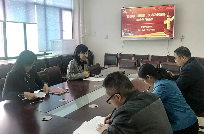 10月24日上午,护理学院在七里坪校区二办507会议室召开“担使命、履职责,矢志为民服务”专题集中学习研讨会,学院党政领导班子成员参会。