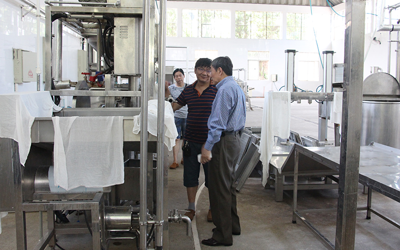 孔祥福博士品尝了基地自主研发的大豆膳食纤维产品,并给予了高度评价,认为已达到北美市场同类高端产品口感,是符合潮流的功能性健康食品,具有广阔的市场前景和减排环保的意义。