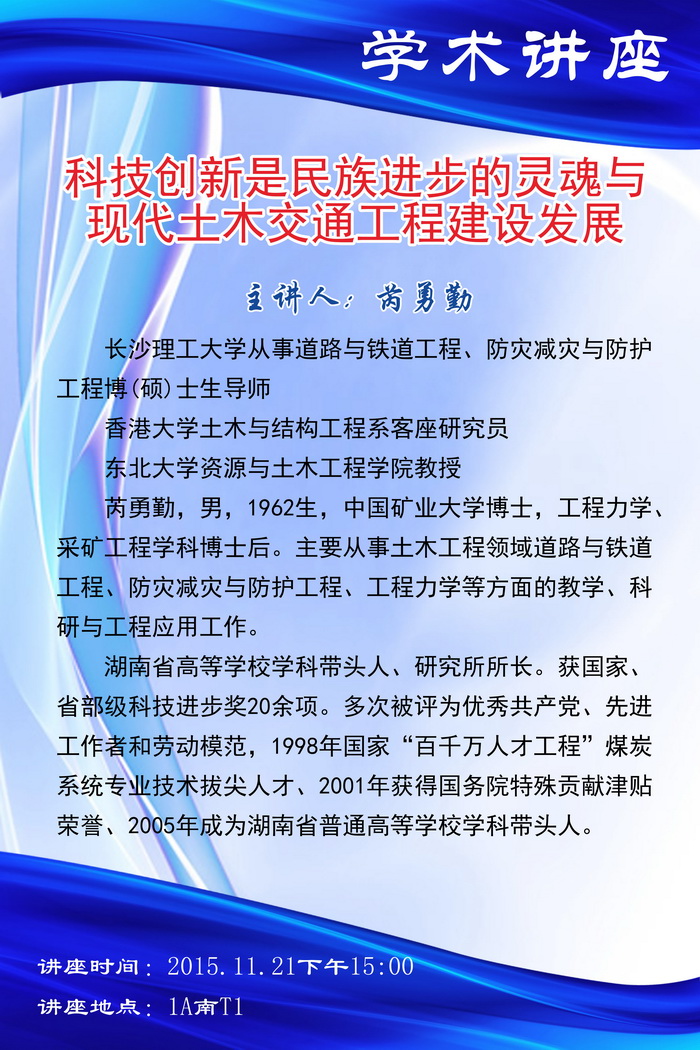 学术讲座:科技创新是民族进步的灵魂与现代土木交通工程发展