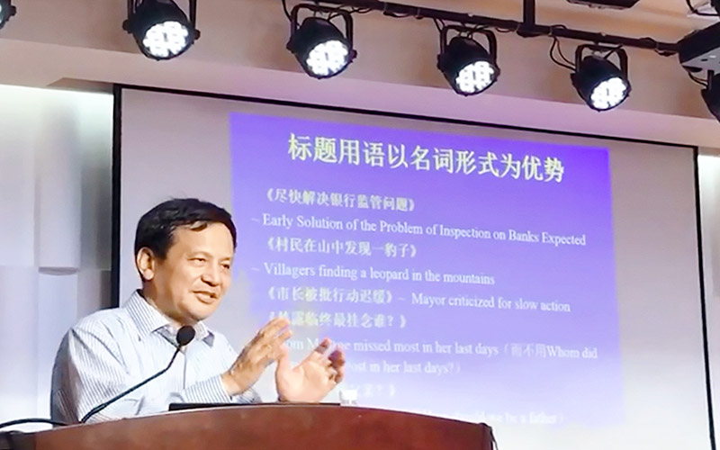 刘丹青教授作了题为《动词名词哪家强?汉语英语各不同》的报告。刘丹青教授从构词、短语,句子(包括疑问句、否定句等)各个层面,从变换、汉语国际教育等角度,列举大量贴近生活的例子,将汉语、英语动词与名词使用频率的不同进行了比较,最后得出结论:汉语动词更重要,动词强;英语名词重要,名词强。刘丹青教授的报告充分体现了实事求是的科学精神与大家风范。