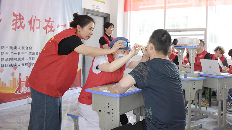随后,邵阳学院附属第二医院口腔科医生为在场的所有残障人士进行了口腔健康义诊和提供健康咨询。义诊结束后,医院手语志愿者们向残障人士赠送了爱心礼物。