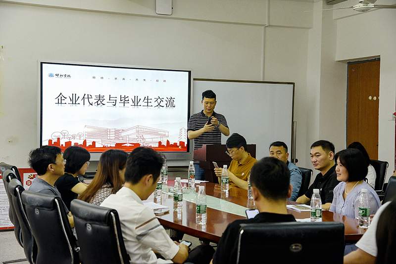 当日座谈会邀请到湖南省五阳塑胶制品有限公司、邵东霞客乐汽车制造有限公司、湖南五好皮具箱包股份有限公司、湖南定包包智能制造有限公司、长沙卓尔谟教育科技有限公司等5家企业。产品设计专业教研室主任康胜博士介绍了5家企业的情况后,企业代表首先以“如何做好简历及作品集”为题,给在座的同学们分享了企业视角的人才招聘情况和求职、面试等方面的建议。各企业分别对本次入校招聘的共计30余个就业岗位进行了岗位描述和讲解。3名毕业生代表主动介绍了自我求学情况和前期求职的情况,企业代表归纳为自我素养表达、岗位精准对接、面试技巧等维度,对毕业生代表的介绍进行了详细的解剖分析。