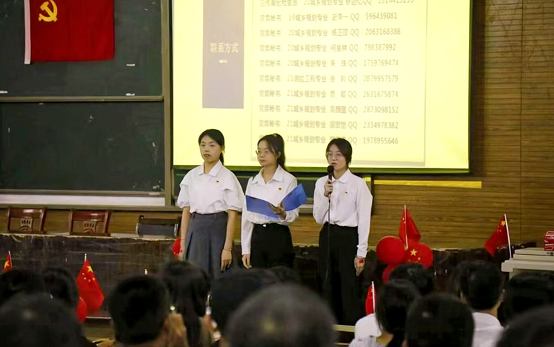 学院学生党支部副书记李强、文湘,党支部宣传委员蔡迈亿分别向在座学生介绍党组织架构、学生党支部工作以及详细的入党流程,让党组织以接地气地方式走进学生的视野。李强同志代表学生党支部寄语新生,希望新时代的土木建筑人用脚步丈量祖国大地,用眼睛发现中国精神,用耳朵倾听人民呼声,用内心感应时代脉搏,把对祖国血浓于水、与人民同呼吸、共命运的情感贯穿学业全过程、融汇在事业追求中。中国共产党始终向青年敞开大门,热情欢迎青年学子源源不断成为党的新鲜血液。