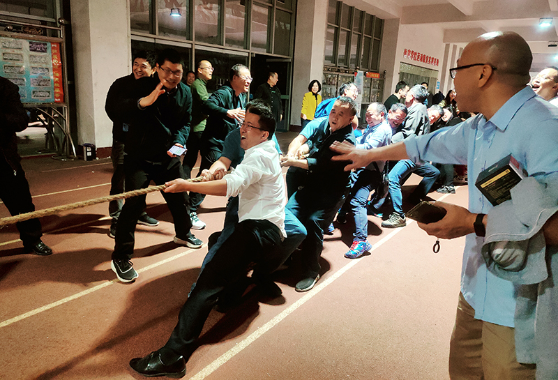 拔河比赛每队选出15人参加比赛,要求女教工不少于3人。比赛采取四个联队循环进行对抗赛,由对抗赛成绩排名第一、第二的联队进行决赛。夏冬晴吹响开拔哨声,双方迅猛紧拉长绳,卯足了劲拼命往后拽、朝后引,未参赛的教工组成啦啦队为自己的团队呐喊加油,哨子声、呐喊声、鼓掌声此起彼伏,现场的激烈和火热将整个活动推到至高潮。最终,超越队获得拔河赛冠军。