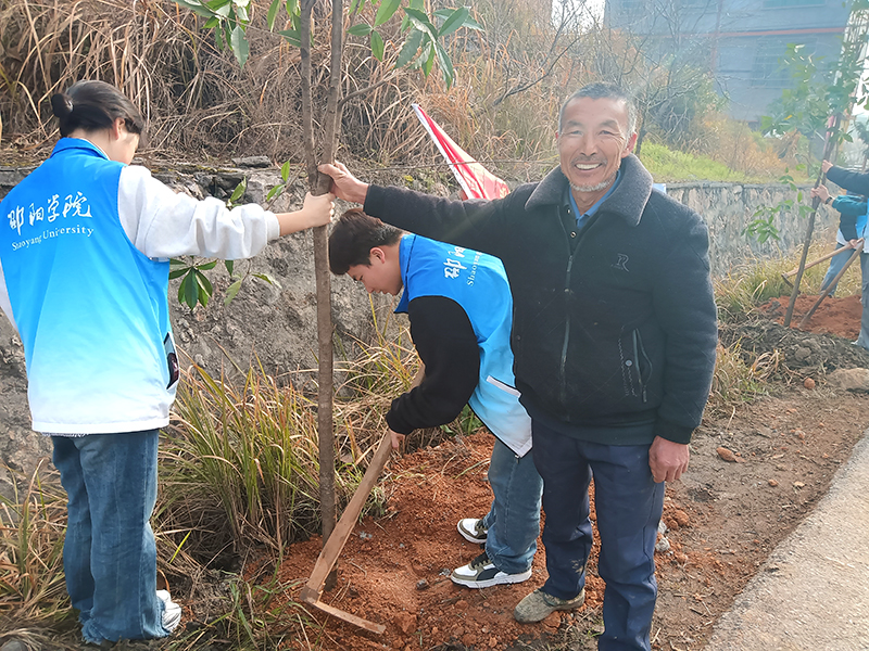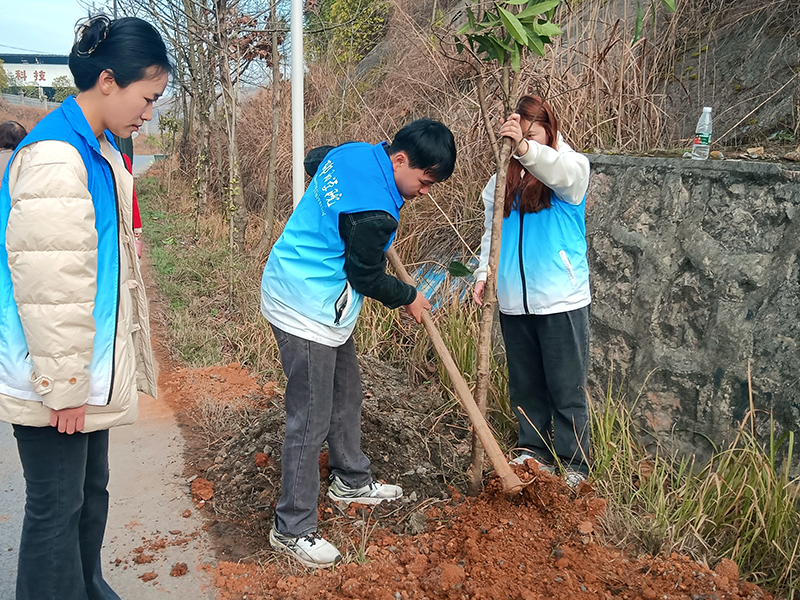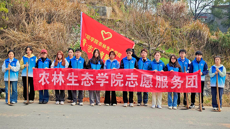 3月12日植树节,农林生态学院组织大学生志愿者来到大祥区雨溪镇罗塘村,开展“营造共青林,共筑绿色梦”植树活动。