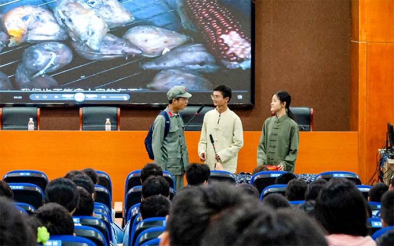 “一条棉裤,在湖南省邵阳市城步苗族自治县长安营镇长坪村周旺华的家中,历经了近九十年的岁月洗礼,历经三代人的传承与守护,始终被视为家中的珍宝……”来自马克思主义学院的分享团队以情景剧的形式生动地再现了这一段军民鱼水情的佳话。