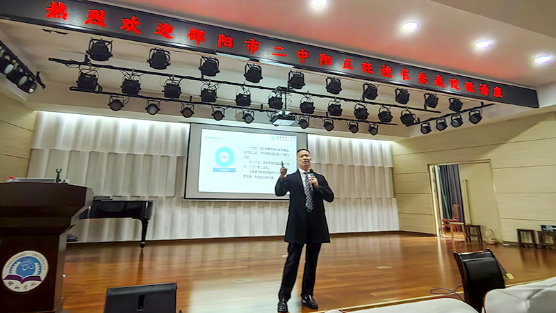 11月28日下午,邵阳市二中副校长阳正旺来到外国语学院,做了一场题为“练内功 强素质 做名师——浅谈新教师的困扰及对策”的讲座。22级英语专业、23级英语专业1、2班及邵阳市二中部分教师到场聆听讲座。讲座在李子园校区绿汀音乐厅举行,外国语学院副院长蒋芬主持并总结。