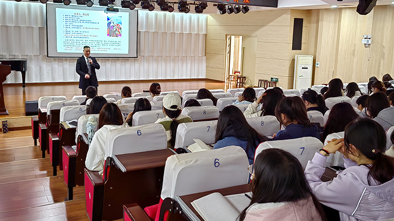 阳正旺从一个教育专家和教学管理者的双重身份出发,围绕新教师面临的问题和困惑展开,详细列出新教师应具备的素质、教学常规基本要求、给新教师的几点建议等。他指出,作为师范生,必须要加强专业基本功,要热爱教育事业,要学习科学教育理论、掌握教育规律,要具有吸收科学信息和更新知识的能力。同时,要具有开放的心态、终身学习意识、敬业精神,并培养爱心,责任心和进取心,要熟悉本国文化,要在教学中融入思想政治教育。阳正旺思路清晰,语言充满力量,富有激情,全程站着讲座,不时与学生互动,现场气氛活跃。