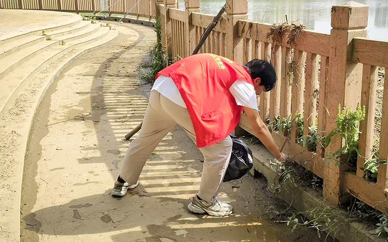 在捡拾垃圾的过程中,志愿者们配合默契,有人徒手清扫落叶,有人弯腰接应,将团队协作精神发挥得淋漓尽致。同时,他们还主动向同行路人宣传清洁河道活动,呼吁大家共同爱护河流环境,以实际行动践行“河小青”的责任与担当。