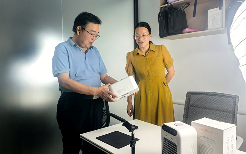 7月2日晚,党委书记宁立伟调研经济与管理学院跨境电子商务人才培养基地。当时在基地工作的经济与管理学院院长杨琴及其他师生参与访问与调研。