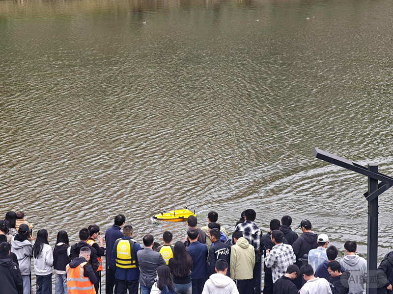 在明德楼北楼广场,师生分组操作RS10/RS30手持SLAM激光扫描仪,实时完成建筑立面数据采集与三维建模,体验其在建筑监测与遗产保护中的实际价值。明德广场上,华测X500行业级无人机搭载激光雷达进行航测演示,可实现厘米级地形建模,适配多传感器,满足复杂场景需求。五泉湖畔,华微4号无人船开展水下测量实践,学生参与航线规划与多波束测深操作,了解其在水利巡查、数字孪生及应急救灾中的应用。
