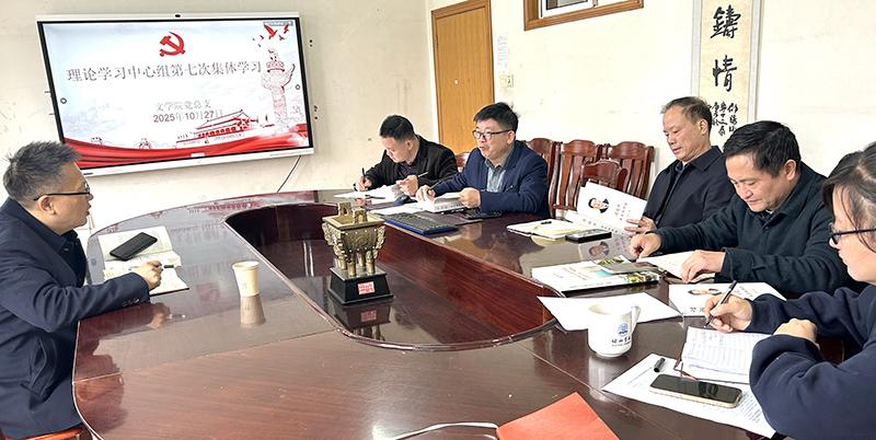 10月27日上午,文学院党总支在学院会议室开展了理论学习中心组专题学习,中心组学习会议由文学院党总支书记黄建军同志主持,学院党政班子全体成员参学,党委委员、副校长黄秋生巡听旁听中心组学习。