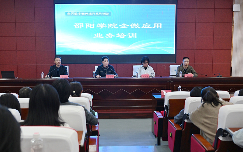 10月28日下午,我校于七里坪校区润德楼报告厅举办全民数字素养提升系列活动之邵阳学院企微应用业务大培训。校党委副书记赵敏丽出席,信息与网络中心主任夏冬晴主持,各部门单位信息员、二级学院学工秘书、研究生团总支副书记、研究生学生会主席、二级学院团总支学生副书记、学生会轮值主席、信息与网络中心全体人员共计117人参加培训。