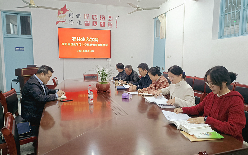 10月30日下午,农林生态学院党总支在七里坪校区求是楼216会议室开展理论学习中心组集中学习,专题学习《习近平谈治国理政》第五卷。校党委委员、副校长唐杰全程巡听指导,学院党总支理论学习中心组全体成员参与学习研讨。会议由党总支书记章坤主持。
