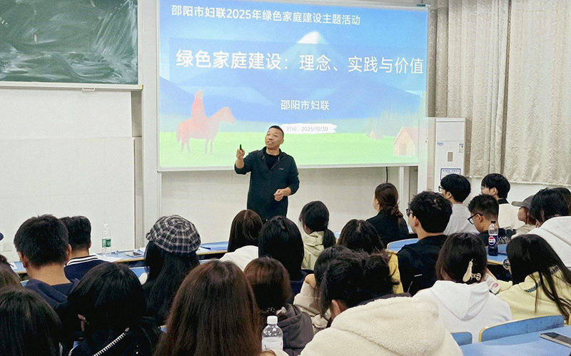 10月30日,设计艺术学院在七里坪校区明德楼T3教室举办2025年绿色家庭建设主题讲座。本次活动系邵阳市妇联“绿色家庭建设”主题活动的重要组成部分,吸引师生及戴家社区家庭代表广泛参与,旨在普及绿色生活理念,倡导清廉家风,推动生态文明建设向家庭延伸。