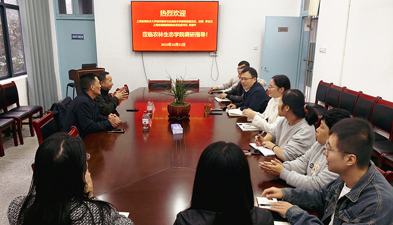 10月31日,上海应用技术大学城市建设与生态技术学部常务副主任李法云教授、上海市湖南邵阳商会党支部书记郑清平一行到访农林生态学院,就人才培养综合改革、科技创新和产业创新融合等议题开展专题调研与交流。农林生态学院党总支书记章坤,副院长杨贤均、罗中钦,副书记谢秀秀及教师代表参与座谈。