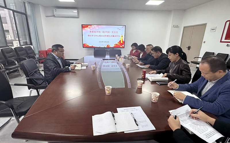 10月30日下午,普爱医学院(医学部)党总支在基础医学楼201会议室开展理论学习中心组2025年第七次集中学习。会议由党总支书记邹胜琪主持,学院班子成员及党总支委员参加学习研讨,校党委委员、副校长唐杰到会巡听指导。