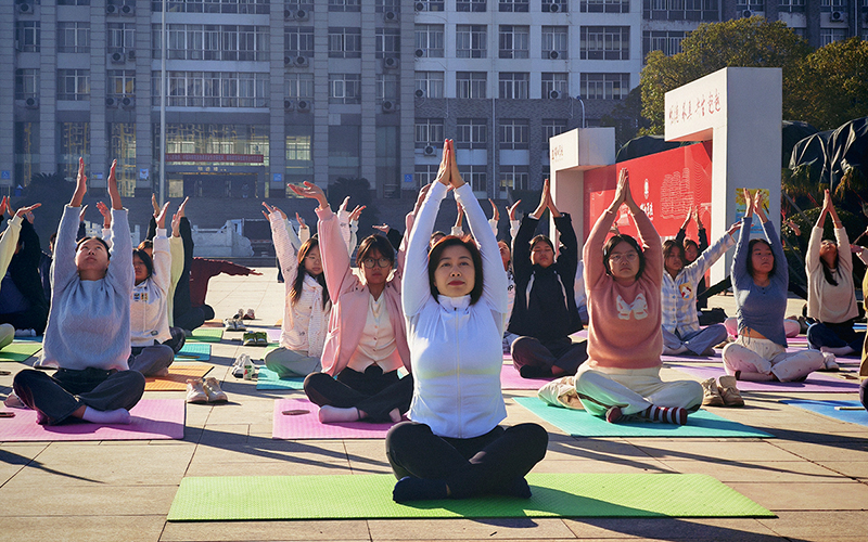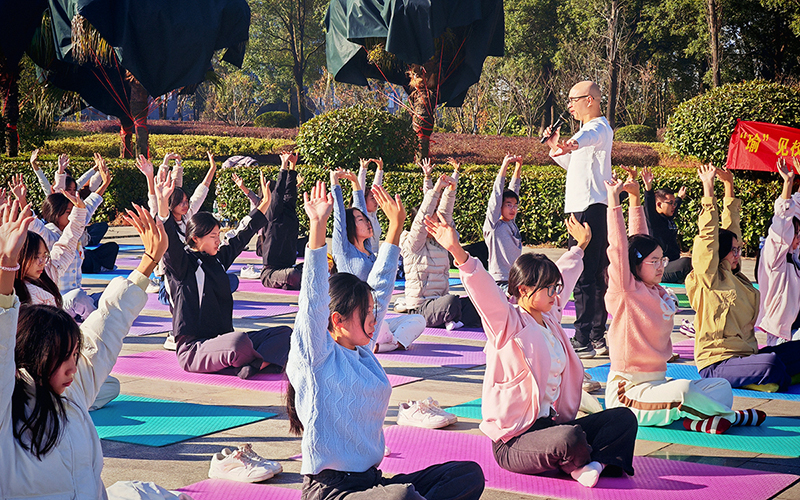 11月30日上午,在清晨的阳光中,一场名为“‘瑜’见校园,‘锦’彩周末”的户外瑜伽活动在邵阳学院明德楼广场举行。该活动由普爱医学院“健康+”协会组织,吸引了约50名学生参与。