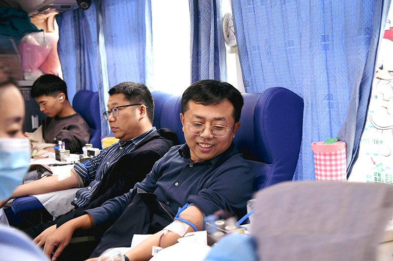 启动仪式后,献血环节有序开展。机关第五支部党员干部率先垂范,踊跃登记献血。现场老师们纷纷表示:“作为一名党员,在临床用血紧张时挺身而出,是我们义不容辞的责任。”在党员的带动下,青年学生积极响应,成为此次献血的“主力军”。国防教育实践营的何锐和沈亮两名同学刚满18岁,首次参与献血,“能通过献血帮助他人,感觉特别有意义。”
