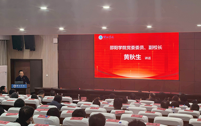 12月11日,邵阳学院创新创业赛事指导能力提升专题推进会在润德楼报告厅举行。校党委委员、副校长黄秋生出席会议,各学院分管负责人、创新创业教育教师代表参加本次会议。会议由招生就业与创新创业指导处处长肖楚丽主持。