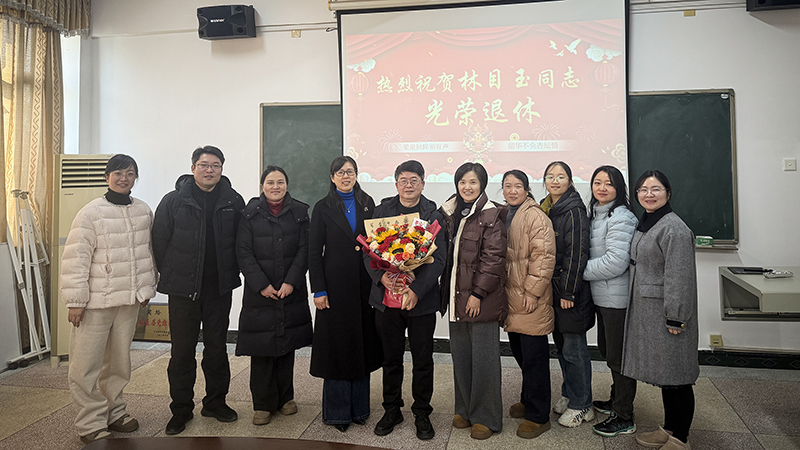 致辞结束后,年轻教师代表为林目玉老师献上鲜花,林老师与同事们逐一握手、合影留念,现场氛围温馨感人。随后,林老师发表荣休感言,对学院与同事的关怀表示感谢,并表示将持续关注学院发展。
