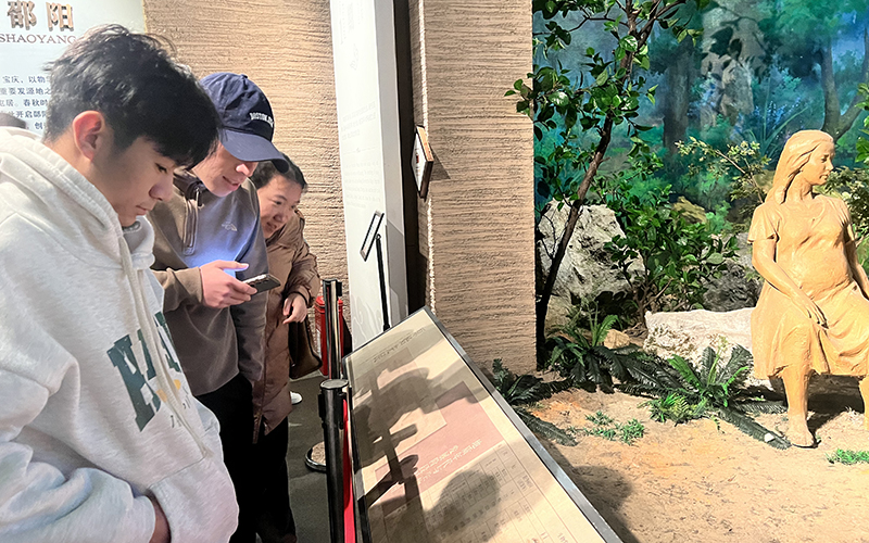 当天下午,国际学生们在学院教师的引导下,首先步入古代历史展厅:远古动物化石、新石器时代雕刻品、古代器皿等展品吸引着学生们不时驻足询问,赞叹不已。在近代历史展区,国际学生深入了解了邵阳在近代中国风云变幻中的角色与贡献,感受到了这座城市在时代浪潮中坚韧不屈的精神品格。现代展区则集中展示了新中国成立后,特别是改革开放以来,邵阳在经济、社会、文化等各领域取得的辉煌成就与城乡面貌的巨大变迁,让国际学生对邵阳的快速发展有了直观认识。