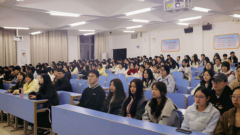 3月11日晚,法商学院在七里坪校区明德楼教室举办“传承两弹一星薪火,勇担民族复兴重任”主题宣讲活动。本次活动由校团委、学校“两弹一星”精神宣讲团主办,法商学院团总支大学生艺术中心承办,法商学院2025级全体学生参加。