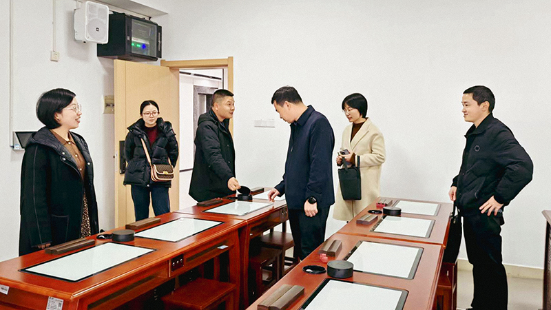 调研组一行先后实地参观了邵阳学院教师发展中心、现代教育实验室及书法室,详细了解学校在数字教学资源建设、智慧教育应用场景以及传统文化数字化传承等方面的实践成果。在教师发展中心,调研组听取了关于教师数字素养培训体系建设的介绍;在现代教育实验室,调研组现场观摩了虚拟仿真教学、智慧课堂等数字化教学场景的演示应用,对学校在推进教育数字化转型方面的探索给予充分肯定。