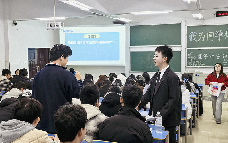 同日晚间,医学技术学院学生科普团队走进信息工程学院,开展“医学科普进工科”主题健康宣讲活动。宣讲围绕四个贴近大学生生活的话题展开:耳机对听力的潜在影响、日常姿势纠正与体态管理、采血管颜色对应的检测项目、体检报告的解读方法。活动现场,志愿者通过现场示范和趣味讲解,帮助同学们掌握健康知识。