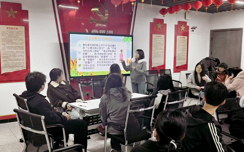 3月26日晚,“人人都是树洞君”主题团辅活动在一站式党团活动室举行。本次活动由“筑梦倾心”工作室主办,经济与管理学院、机械与能源工程学院、国际学院、电气工程学院、马克思主义学院等多个学院学生共同参与。活动旨在响应“3·25”大学生心理健康日“善爱我”主题,创新心理健康教育形式,营造关注心理、互助友爱的校园氛围。