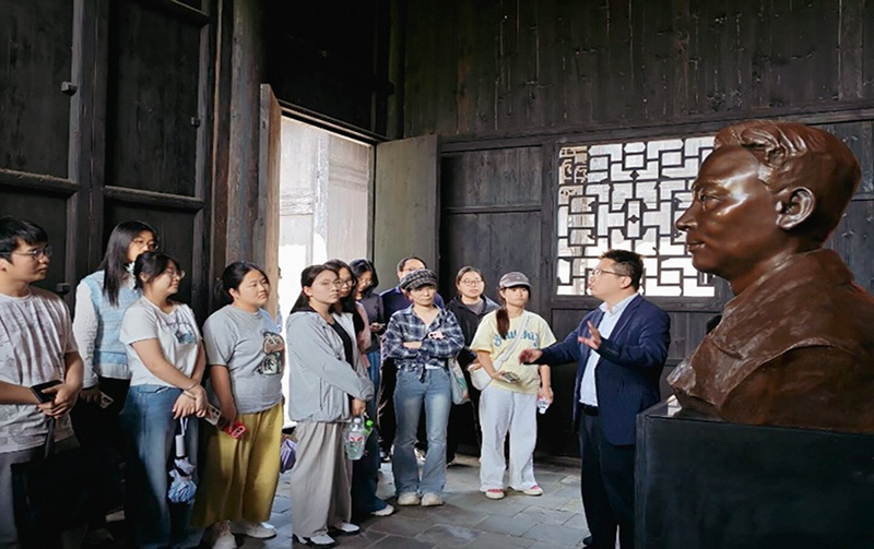 在现场教学中,马克思主义学院姜敏老师以《“南方抗大”精神和吕振羽的情怀》为题,围绕塘田战时讲学院的发展历程、“南方抗大”精神的核心内涵,以及著名马克思主义史学家、教育家吕振羽的革命情怀,为学生们带来了一堂内容翔实、情感真挚的“行走的思政课”。