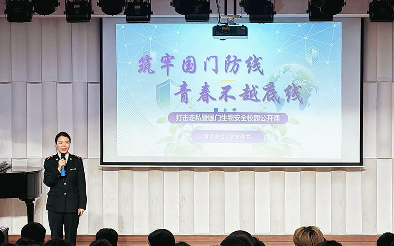 在室内宣讲环节,邵阳海关与市烟草专卖局宣讲人员围绕国门生物安全、反走私等内容展开专题讲解。通过剖析外来物种入侵、走私及非法电子烟等典型案例,宣讲人员深入浅出地讲解了相关危害,引导学生树立国门安全意识。互动问答环节中,同学们踊跃参与,现场气氛热烈,在交流中进一步深化了对国家安全知识的理解。