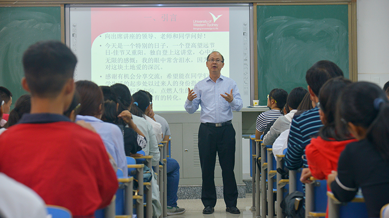 赵大成博士现为西悉尼大学博士生导师、澳大利亚华夏中文学校校长,并任国际比较教育文化协会会长、澳大利亚中澳教育合作研发中心主任等职,主要研究教育心理学和教育比教学,著有《“西洋镜”里看中国教育》等专著,对中西教育的融合有深刻的简介。赵博士曾为我校前身邵阳师专政法系教师,自1997年起,在澳洲从事中西教育文化的比较研究,并在海外创办了推广中国语言文化的社区学校,现为湖南省“海外名师项目”的引进教师之一。此前,加拿大湖首大学博士生导师陈爱成教授也来到我校生化系做了专题讲座。