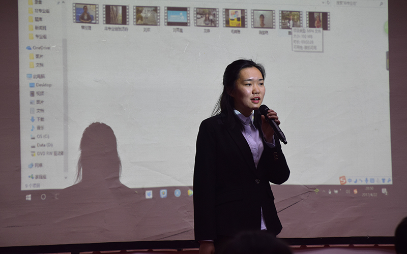 在决赛环节,两组选手需要在赛前制作一条视频新闻,并在比赛现场进行解说,专业组和非专业组交叉进行作品展示,并接受评委提问或点评。参赛选手或紧跟时代热度,围绕《人民的名义》、普利策奖选题;或深度挖掘,报道旅游乱象、违规停车等社会现象。来自专业组的向涛的新闻主题是“你多久给家人打一次电话”,呼吁在校同学多与家人联络沟通,增进亲情连接,他采访了多名学生,并做了详实的调查问卷,并以大学生心理健康中心钟琼瑶老师的观点作为新闻结语。杨吉老师点评表示:“通过厚厚一叠调查问卷,可以看出你很用心,采访的老师也很具有代表性,整体很不错,但缺少字幕,视频制作稍显单调,可以进一步提升。”来自非专业组的刘欢则以“舌尖上的邵院”为主题拍摄了一段视频,采访了馨香食堂的用餐师生和食堂班长,还包括外教David,询问他们的用餐体验。易桂媛老师点评道:“新闻就是要这样,‘用事实说话’,并且还采访了来自不同国度的外教,较有新意,但采访内容可以再丰富一点。”此外,记者协会西湖校区分会会长姚玫利献在赛前唱了京剧《三家店》和《淮河营》的选段,作为暖场节目,活跃了比赛氛围。