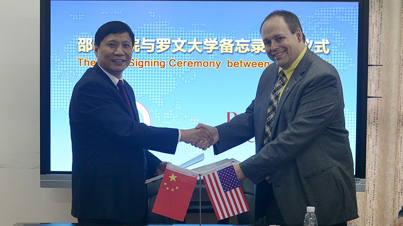 我校与罗文大学的合作从2013年开始,师生互访频繁。2013年底,罗文大学机械工程领域的两位华人博士参与我校机械系的专业项目建设,并指导教师科研,取得了喜人的成绩。2016年,我校党委书记陈晓飞教授利用培训机会会见了罗文大学校长,并达成了深度合作的意向。同时,我校与罗文大学就双方合作办学事宜也进行了细致严谨的探讨和反复磋商,终于成功获批。