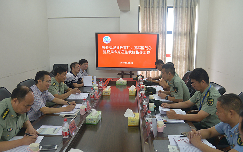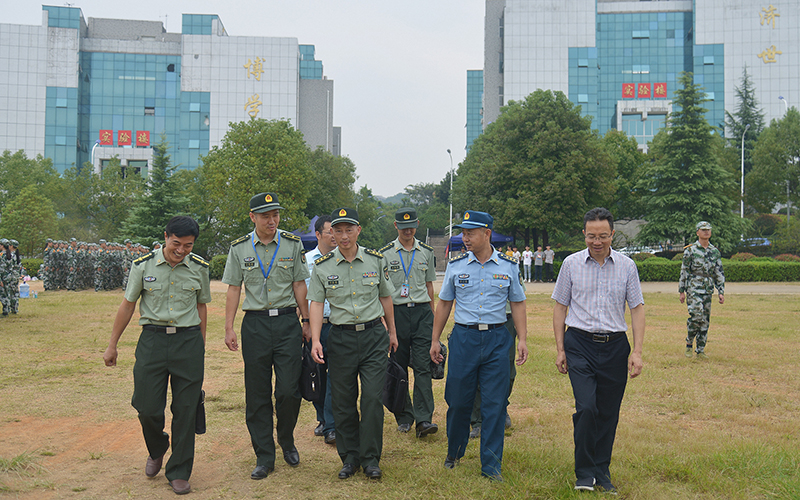 9月14日上午,省军区军训办参谋丁行行、国防科大军事教员张明、省军区综合训练队中队长高冬雨等一行三人组成的“2018年湖南省学生军训工作军地联合考评组”来到我校,调研新生军事训练和国防教育相关工作。邵阳军分区战备建设处处长刘光明、邵阳市大祥区人民武装部部长邓三成、邵阳军分区战备建设处参谋刘泽军等相关领导及我校副校长向文江、学工部(武装部)等负责人全程陪同。