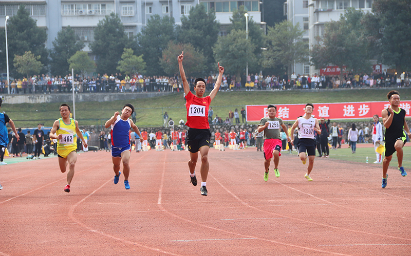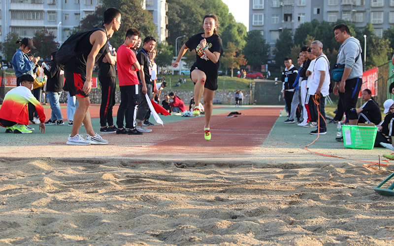 在过去的三天里,我校670名学生运动员、540名教职工奋勇拼搏,在35个体育项目的赛场上肆意挥洒汗水。赛场上座无虚席,各学院通过广播台为本系选手加油鼓劲,在热情的啦啦队的带动下,观众们为每一个参赛者呐喊助威。本届运动会共打破了2项校运会记录,其中,外国语学院肖玲同学以4.48m的成绩打破了郭柏凤同学在1999年师专校运会上创造的4.43m甲组女子跳远记录,体育学院符永环同学则以3.73m的成绩打破了符永启同学在第八届运动会上创造的3.71m乙组男子撑杆跳高记录。