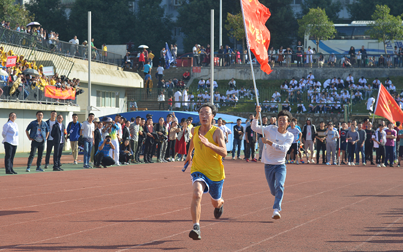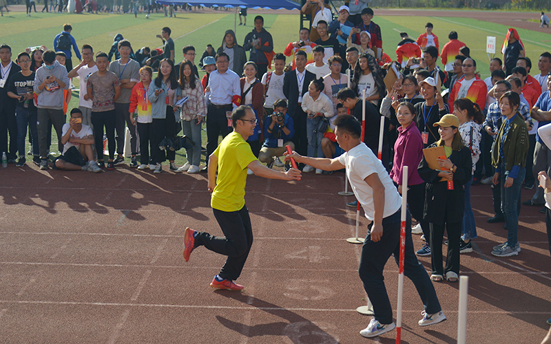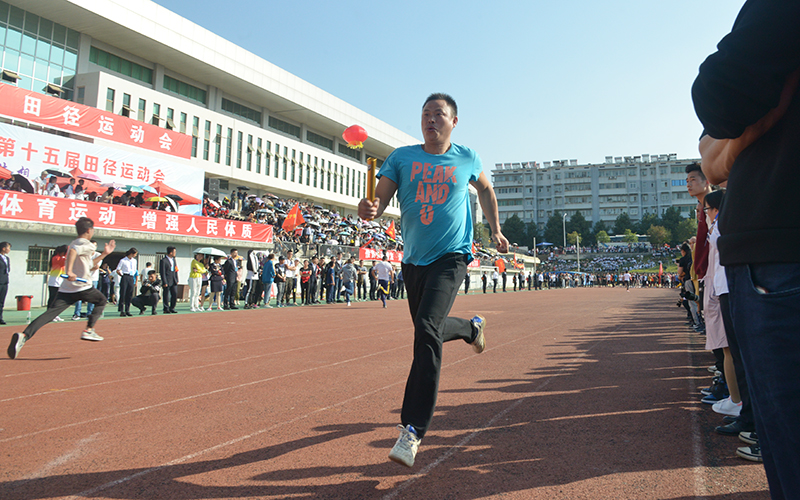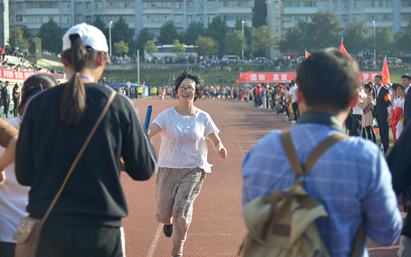10月28日,秋日的阳光让运动场上的激情持续燃烧。在赛程最后的甲组男子4 X 400m接力决赛中,冲在前列的同学咬紧牙关,紧绷肌肉,保持均匀的呼吸与步法频度,一马当先地冲过终点。在终点等候的同学们一拥而上,欢呼着将其搀扶至休息处。落后的同学也并未灰心,他们在好友的鼓励下顽强地跑过终点。随后的教工团体16 X 100m迎面接力决赛则相对氛围轻松,体育竞技与趣味联谊并重,当迎面接力赛的四组比赛结束后,第十五届田径运动会走入尾声。