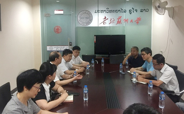 代表团访问了老挝苏州大学和老挝国立大学,了解中国高校境外办学的情况,与老挝国立大学探讨两校师资互派互修及合作开展科学研究等事宜,并参观了老挝国立大学孔子学院。